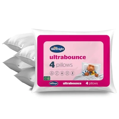 Silentnight Luxury Ultrabounce Pillow 4 Pack of Soft/Medium Support Bed Pillows with Luxurious Stitched Edging Comfy Hypoallergenic Machine Washable