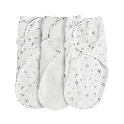 Silentnight Pack of 3 Safe Nights Swaddle Wraps Baby Clothing Babies Wrap Hamper Born Essentials Items Blanket, Grey Star, 559195GE, One Size