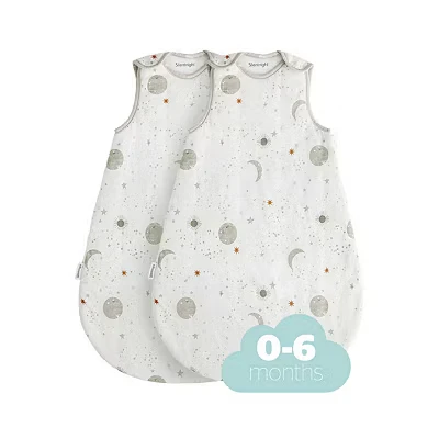 Silentnight Safe Nights Baby Sleep Bag 2.5 Tog Winter Swaddle Wearable Blanket Sleeveless for 0 6 Months Breathable Soft Touch Cotton Jersey Celestial, 2 Pack