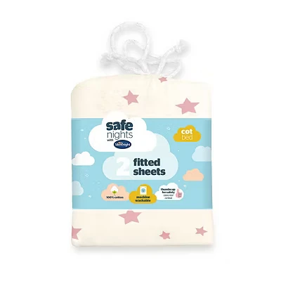 66 Advantage card points. Silentnight Safe Nights Fitted Sheet - Cot Bed - Pink Star - 2 Pack FREE Delivery on orders over 45 GBP.