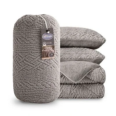 Silentnight Teddy Fleece Coverless Duvet & Pillowcase Set Luxurious Ultra Soft Cable Knit Bed Quilt 10.5 Tog All Year Round Comfort No Cover Needed Grey, Single