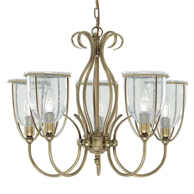 Crafted with a charming antique brass finish, the Silhouette pendant showcases delicate cage-style bars that elegantly encase five calyx-shaped shades made from clear seeded glass. This thoughtful design not only adds a touch of sophistication but also maximises light diffusion, allowing for bright and inviting illumination throughout the room. The antique brass detailing provides a timeless appeal, effortlessly complementing both contemporary and classic decor.