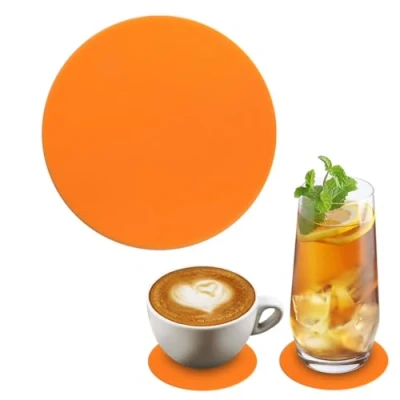 Silicone Coasters, Round Non Slip Washable Decorative Coasters for Beer Pint Glass, Coffee Cups, Tea Cups and Bottles Orange