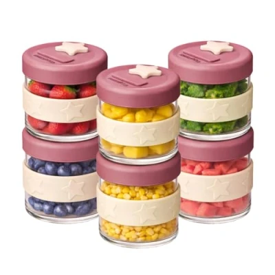 Silicone & Glass Baby Food Storage Containers 6PK 120ml Dusty Rose Sand