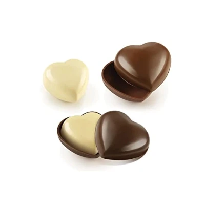 SECRET LOVE MOLD: Ideal for creating adorable 3D chocolate heart pairs, the reusable thermoformed mold is perfect for Valentine's creations or as a sweet gift, offering detailed and professional results, ensuring stunning outcomes every time. Dimensions: large 123 x 115 h 44 mm small 93 x 99 h 36 mm Boxed packaging 3D CHOCO: Discover our selection of reusable thermoformed molds to create delicious homemade chocolates. The new range of molds dedicated to 3D chocolates will allow you to create chocolate treats that will surprise you with their original and three-dimensional shape! HOW TO USE: Fill the molds with tempered chocolate and turn them upside down on a rack to let the excess drip off. Repeat until the desired thickness is achieved. Leave upside down for about 4 hours until fully crystallized. Unmold by gently tapping the molds; if necessary, press lightly to detach the chocolate. Stick the components together with melted chocolate or by heating the edges on a warm tray. THE NEW TRADITION: This line of Silikomart molds is designed to recreate the atmosphere of traditional pastry reinterpreted in a modern key. Perfect for rediscovering classic and timeless shapes, ideal for creating delicious recipes with perfect results from the very first bake. SILIKOMART: For over 20 years, we have been synonymous with a passion for the art of pastry. With Italian design and Italian production, we innovate by creating cutting-edge shapes that push the limits of taste, transforming the creative genius of contemporary pastry chefs into extraordinary works of art and ensuring global quality and excellence.