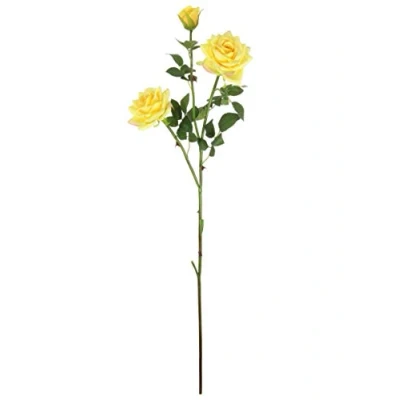 Silk Rose Flower Stem With 3 Heads And Leaves In Red, Pink Or Cream Adjustable 70cm Flowers (yellow)