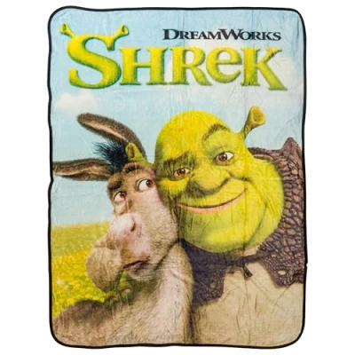 SOFT AND DURABLE: Crafted from high-quality Raschel fabric, this throw is both soft to the touch and built to withstand everyday use, ensuring its long-lasting quality. CHARMING DESIGN: The throw features a heartwarming scene of Shrek and Donkey hugging, adding a touch of nostalgia and fun to your home decor. VERSATILE USE: Whether you're keeping warm on a chilly night, decorating your couch or bed, or even hanging it on your wall, this throw serves as a versatile and charming addition to your space. OFFICIALLY LICENSED: Have confidence knowing you are purchasing an officially licensed Shrek Donkey and Shrek Hugging 45" x 60" Raschel Throw from Silver Buffalo MAKES A GREAT GIFT: This Shrek Donkey and Shrek Hugging 45" x 60" Raschel Throw makes a great gift for everyone. Great for any occasion whether it is Christmas, Birthday, Chanukah/Hanukkah, or Housewarming Gifts.