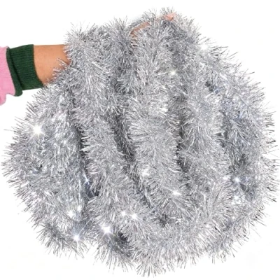 Silver Christmas Tinsel Garland 10 metres Xmas Metallic Chunky for Tree Decorations Supplies 33ft Long