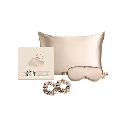 LUXURIOUS NIGHTS SLEEP: Sleep deep and dream big with our softer than silk, silver infused satin gift set. Made from high-quality and durable materials, this pillow case set is the perfect addition to your beauty regime. The sleek satin pillowcase & eyemask will not only help keep you cool and comfortable all night long it has amazing benefits for your hair and skin helping you start you morning with a glorious glow. HAPPIER SKIN: Wake up with a gorgeous glow. The premium satin surface of our pillow case and eye mask doesn’t soak up your skincare and helps your skin retain natural moisture, keeping wrinkles at bay and your skin hydrated whilst you sleep. Infused with silver Ions, our pillowcases not only help prevent the bacteria growth known to cause acne and blemishes, but it can also help keep your bedding smelling fresher for longer thanks to the antibacterial properties of natural silver. HEALTHIER HAIR: Say goodbye to bedhead and say hello to silky shiny hair. The silver clouds satin nonabsorbent surface helps your Hair retain its natural oils, keeping your hair naturally healthy and shiny. The soft satin fabric is gentle on your locks, preventing frizz, tangles and breakage. Our scrunchie is stretchy, soft to wear, won't pull or tug on your delicate strands. PERFECT GIFT: Gift a box of dreams. Presented in a beautiful gift box, our Heart print giftset contains 1 pillowcase, 1 eyemask and 1 scrunchie. The pillow case has been designed to fit most standard pillow sizes and the hidden zipper prevents the pillow from slipping whilst you sleep. Our stretchy blackout eyemask is perfect for blocking out unwanted light. Our non slip scrunchie keeps your hair in place whilst you sleep. The perfect gift for Birthday, Mother's Day, Father's Day, Valentine's Day, Christmas and other holidays SILVER CLOUD: Here at Silver Cloud our mission is to enhance your beauty routine by introducing you to the luxurious world of satin pillowcases that cater to the specific needs of your hair and skin, enriched with the power of Infused Silver IONS for healthier skin and hair.