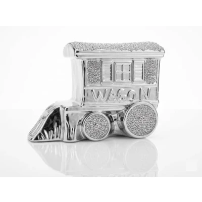 Silver Crushed Diamond King Wagon Ornament, 20cm, Ceramic, Sparkling Bling, Gypsy Caravan