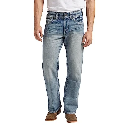 Silver Jeans Co. Men's Gordie Loose Fit Straight Leg Jeans, Light Wash Indigo, 36W x 34L