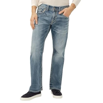 Silver Jeans Co. Men's Zac Relaxed Fit Straight Leg Jeans, Light Indigo, 31W x 34L