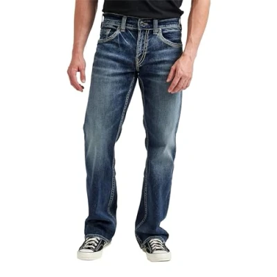 Silver Jeans Co. Men's Zac Relaxed Fit Straight Leg Jeans, Medium Indigo, 33W x 34L