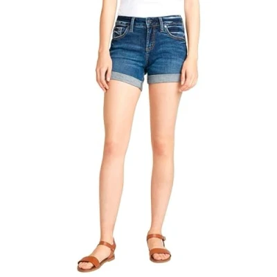 Silver Jeans Co. Women's Boyfriend Mid Rise Short Denim, Cuffed Dark Wash, 26