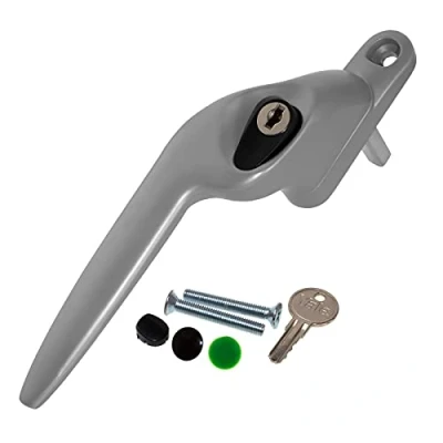 Silver Left Hand Yale UPVC Window Handle Cranked Double Glazing Universal Key Locking 40mm