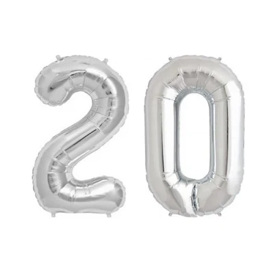 Silver Number 20 Large Helium Foil Balloon Birthday Party Wedding Anniversary Decoration 101cm