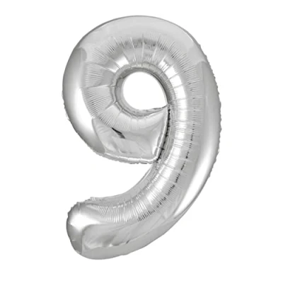 NUMBER 9 SHAPED: Stand out with this stunning silver number 9 shaped large foil balloon, perfect for celebrating a 9th birthday or commemorating a special milestone. Your event will certainly be remembered as a fabulous affair with this impressive centerpiece. GORGEOUS SILVER DESIGN: Steal the spotlight with the silver hue of this foil balloon, creating a lively atmosphere in any celebration. This beautiful color adds a touch of charm and elegance to your event, delighting and captivating guests of all ages. IMPRESSIVE SIZE: Impress your guests with the astonishing 86cm height of this silver number 9 balloon. This giant foil balloon makes a bold statement and serves as a fantastic backdrop for picture-perfect memories of your special day. ONE-PIECE CONVENIENCE: Cut down on decorations fuss with this 1-piece, easy-to-inflate, large number 9 balloon. Save time and effort with this spectacular, easy-to-setup addition to your party décor that instantly uplifts the venue. PERFECT FOR ANY OCCASION: Ideal for celebrating 9th birthdays, anniversaries, or enhancing creative theme parties and events, this silver number 9 shaped large foil balloon is a must-have item to create unforgettable moments., Manufacturer: Unique Party