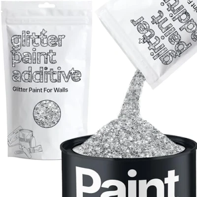 BEAUTIFUL PAINT GLITTER: Our glitter paint additive is an easy & effective way to add a unique, shimmering finish to transform any interior surface; soften walls with paint glitter; the glitter particles reflect light for an enchanting effect. EFFORTLESSLY BLENDS IN: Just add the glitter to emulsion, acrylic, or latex paint (flat, matt, sheen or silk), varnish or lacquer; mix the contents of the packet into paint, at a ratio of 100g (1 packet) per 1L. Stir thoroughly & apply for a stunning sparkle. LONG-LASTING SPARKLE: Designed for durability, the glitter particles are UV, heat, solvent & fade-resistant & waterproof to maintain their sparkly look over time; for best results use our buffing pads, once your paint is dry. STUNNING FINISH: Easily create high-end glitter walls with our glitter additive, perfect for beginners & experts looking to add some shimmer to walls. DISCLAIMER: Colours may vary in different lighting conditions. ENHANCED LIGHT REFLECTING TECHNOLOGY:The premium glitter crystal flakes are specially designed to sparkle under light when added to paint due to the highly reflective metallic properties and premium raw materials.