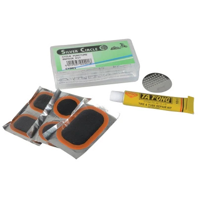 @@@jDWItfLYVskqhztBqSHjKRxNkVR0nNCE@@@ description This puncture repair kit is designed for pneumatic tires with inner tubes, such as bicycles, wheelbarrows, or sack trucks. It includes all necessary components to quickly and effectively repair punctures, helping you get back on the move with minimal effort. Technical specifications Type: Puncture Repair Kit Part Number: CY001 Contents: 10cc of solvent, scourer Repair patches: 5 in the standard kit, 7 in the large kit EAN: 5019567044018 Installation Clean the puncture area with the included scourer Apply the solvent to prepare the surface Place the repair patch over the puncture and press firmly until sealed Usage Ensure the tire is deflated before starting the repair Follow the cleaning and application steps for effective sealing Allow the patch to set before reinflating the tire Other information