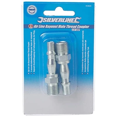 Silverline 1/4" BSP Air Line Coupling Bayonet Male Thread 2 PACK