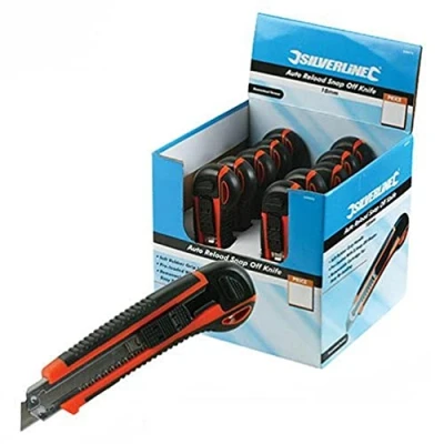 Silverline 18mm Auto Reload Snap Off Knife Display Box 10pce
