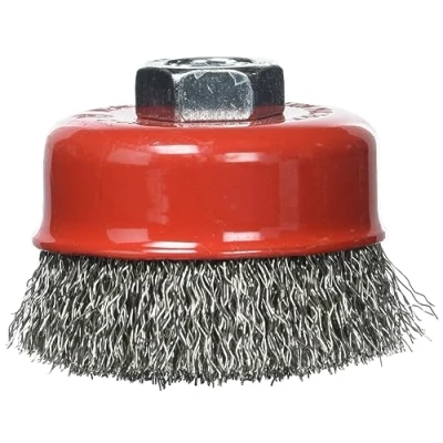 0.5 mm dia high tensile crimped stainless steel wire For rust and paint removal, descaling, deburring and preparation of welding seams For metal and stone working, cleaning, surface preparation and fabrication tasks For use with angle grinders M14 x 2 female thread / max 12,500rpm
