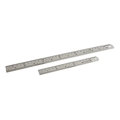 Stainless steel Etched metric and imperial graduations Clear, easy-to-read markings Hanging holes for easy storage Includes sizes 150 and 300 mm