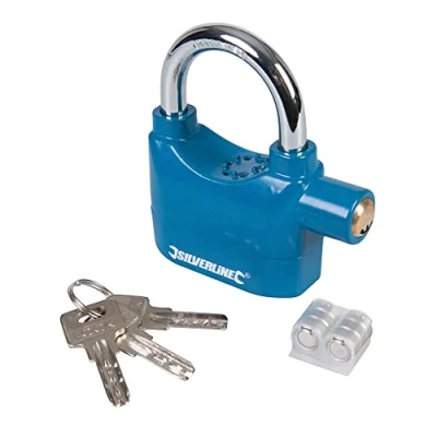 Heavy duty aluminium alloy with chrome-plated shackle and powder-coated body Emits ear-piercing 110dB twin-tone alarm siren when armed padlock is moved Secures motorcycles, trailers, garden machinery, outdoor furniture, sheds and garages Auto-reset, anti-muffle design and can be used alarmed or unalarmed Includes 3 x iron keys and 2 sets of batteries, Manufacturer: Silverline
