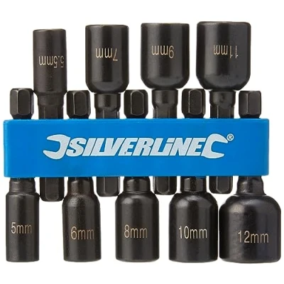Chrome vanadium steel For use with power drills 1/4" hex drive Includes sizes 5, 5.5, 6, 7, 8, 9, 10, 11 and 12 mm Compatible with all 6.35 mm chucks, Weight: 0.4519476371 pounds, Manufacturer: Silverline