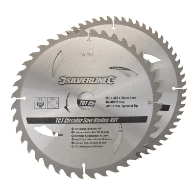 Silverline TCT Circular Saw Blades 40, 60T 2pk 250 x 30 25, 20, 16mm Rings