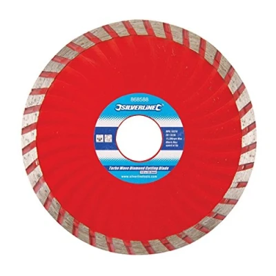 Continuous rim blade with 7mm deep rim for fast, smooth cutting and long life. Wave form body aids dust removal, which is ideal for deep cuts in concrete. For general building use on stone, concrete, pipes, brick, roof tiles, patio slabs and lintels. Manufactured and certified to EN13236. Compatible with 22.23mm bore angle grinders including Silverline and GMC. Wet or dry use. Optimum results if used wet.