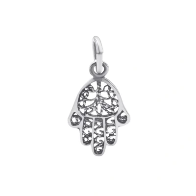 SilverlyA stunning symbol of protection and peace, our Sterling Silver Filigree Fatima or Hamsa Hand Charm looks amazing linked to a chain, hoop, or hook. This lucky charm showcases intricate filigree detailing and a bail for attachment. Create a spiritual hand necklace or add it your favourite charm bracelet.. 925 sterling silver filigree Hamsa Hand (Fatima Hand) charm pendant.. Charm height 14 mm (0.6"). Charm width 6 mm (0.2"). Weight 1.8 grams.. These lucky charms for bracelets are the ultimate fashion staple, and they're also perfect for creating customised hoops, dangle earrings, and necklaces.. 100% genuine sterling silver containing 92.5% by weight of silver - this jewellery is both hypoallergenic and nickel free.