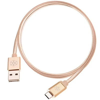 SilverStone SST CPU04G 1000 Reversible USB Cable, A to C Nylon Braided Extremely Durable High Speed Charge and Data Sync, 1.0 m, gold