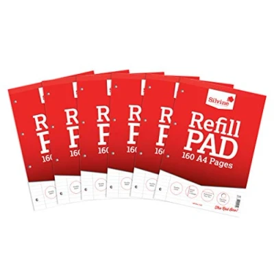 Silvine 160 Page A4 Refill Pad, Head Bound and Punched 4 Holes. Ruled 8mm Feint with Margin. Ref A4RPFM [Pack of 6],White