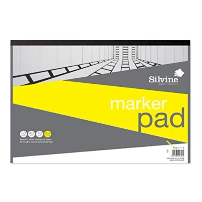 Silvine A3MP Professional Bleedproof Marker Pad. 50 Sheets (70gsm). Ref,White,A3
