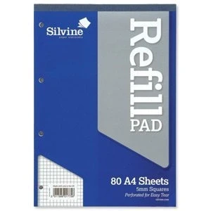 Silvine A4 Refill Pad 5mm Quadrille Squares 160 Pages Blue/White (Pack 6)