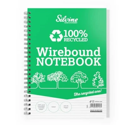 Silvine A5 100% Recycled Wirebound Notebook, Lined 104 Pages 70gsm [Single]
