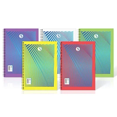 140 pages ruled 8mm feint Durable clear polyprop covers Assorted pack containing Green, Purple, Red, White and Yellow Size: A4 (297 x 210mm) Mixed pack of 5 books