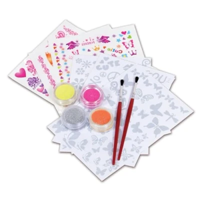 The set includes over 70 create-your-own tattoos, over 100 ready-made tattoos, a brush and four glitter powders No limits to your creativity Recommended age: 5 years and up, Manufacturer: Simba
