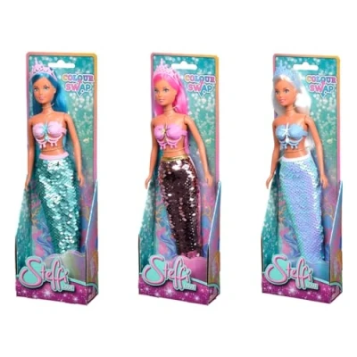 Simba 105733498 Steffi Love Colour Swap, 3 Way Assorted, Only One Item Delivered, Mermaid Doll with Sequin Tail Fin and Great Swap Effect, 29 cm, for Children from Years