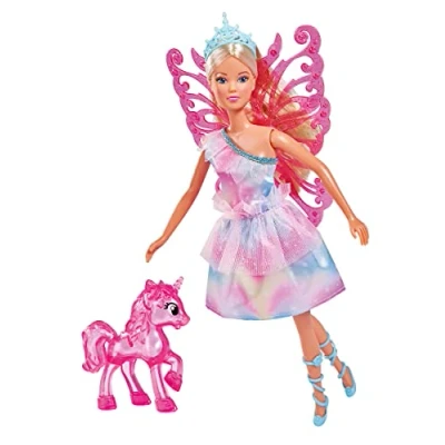 Dressing doll - Steffi Love is a real fashion doll. She loves chic clothes, trendy hairstyles, her little sister Evi and, of course, her friend Kevin. Girls can style and dress their doll in the current fashion trends. Steffi as a fairy - Steffi enchants as a fairy with pink wings and wears a beautiful one-shoulder dress in pastel rainbow colours that sparkles great. removable wings - the large wings on the back can also be removed and easily attached. . In addition to Steffi, the set also includes a cute unicorn as a playmate. Age recommendation – the Steffi doll is 29 cm tall and suitable for children from 3 years. Simba – elephant fun. The product development is the enthusiasm of children. For boys and girls, small and large. Children should have fun and be encouraged., Manufacturer: Simba Toys