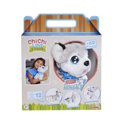 Simba 105890050 Chi Love Happy Husky, responds to 12 Voice Commands, More Than 60 Different Sounds, 30 cm, from 3 Years, Blue