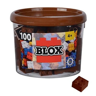 Simba Blox, 104114533, 100 Brown Building Blocks for Children from 3 Years, 4 Bricks, in Tin, Fully Compatible with Many Other Manufacturers