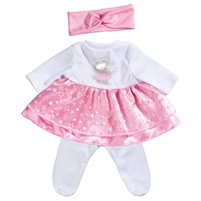 Doll clothes - With the Laura glitter star set, children can make their doll is just the thing for all little fairies and doll fans who want to make their doll shine. Glitter outfit - The clothing set consists of a dress with white top and pink skirt, whose tulle is decorated with glitter stars. A pink headband with bow and white tights complete the set. With cute motif - on the top of the dress is a cute hippo printed that also wears a pink dress. For 38 cm dolls - The doll clothes are suitable for all dolls with a size of 38 cm and perfectly complements your own doll accessories. Simba Elephant-sized fun! At the heart of product development is the enthusiasm of children. For boys and girls, small and large. Children should have fun and be encouraged., Manufacturer: Simba