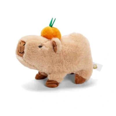 Simba PetZoo Capybara Soft Toy Orange on the Head, Running and Making Sweet Sounds, Try Me Function, Interactive Plush Toy, 17 cm, Age 3+