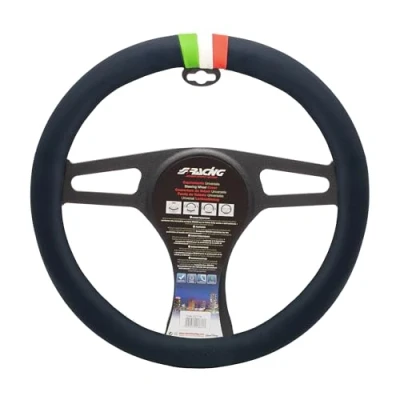 Stable and secure grip: Non-slip surface ensures total control and comfort while driving. Quality Material: Made of durable PU leather, soft to the touch and easy to clean. Tricolour design: Decorative insert in the colours of the Italian flag for a distinctive and sporty style. UNIVERSAL COMPATIBILITY: Suitable for steering wheels from 37 to 39 cm, quick installation without tools. Protection and comfort: Preserve the original steering wheel from wear and tear and improve your daily driving experience.