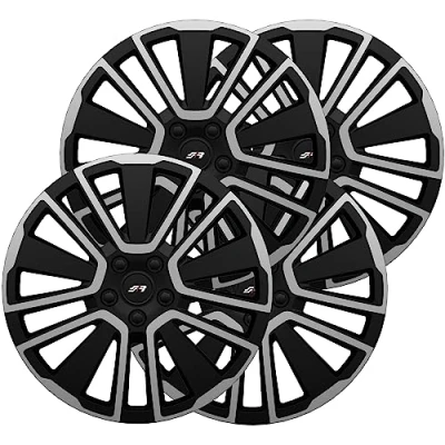 Set of four universal wheel trims 15 inch Protect wheel nuts and bolts from dirt, salt or corrosion - Protect the wheels from everyday shocks Ultra fast mounting system The hub caps are made of durable and durable plastic, they impress with their ease of assembly: simply place and secure with an internal locking ring The design of the spokes puts your car in the center of attention. The hub caps have the colors Grey and black