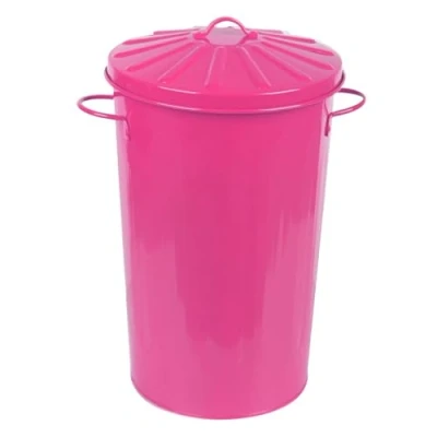 simpa 18L Colourful Vintage Style Metal Tapered Dustbins & Lids Pink 44cm (H) x 24.5cm (Dia)