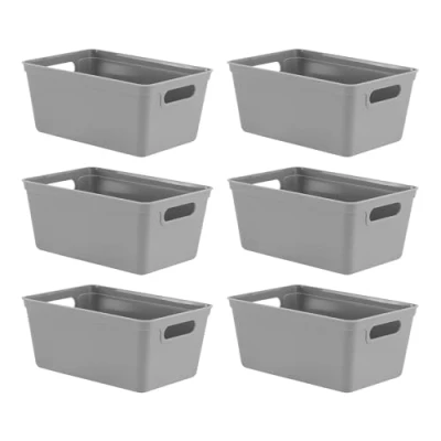 simpa 4L 4 Litre Plastic Storage Basket Studio Organiser Trays with Handles Grey, Set of 6 11cm (H) x 25cm (L) 17cm (W)
