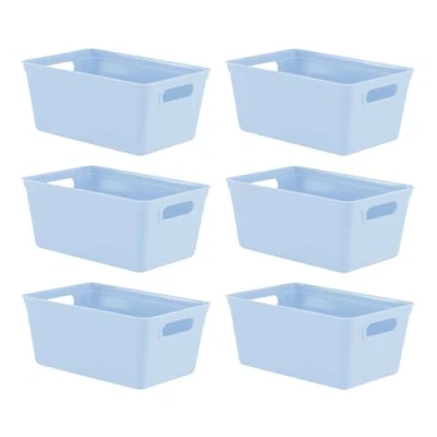 simpa 4L 4 Litre Plastic Storage Basket Studio Organiser Trays with Handles Pastel Blue, Set of 6 11cm (H) x 25cm (L) 17cm (W)